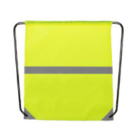 Рюкзак из мягкого полиэстера 190T со светоотражающей полосой спереди. Самозакрывающиеся черные завязки и светоотражающие уголки, усиленные металлическими кольцами.