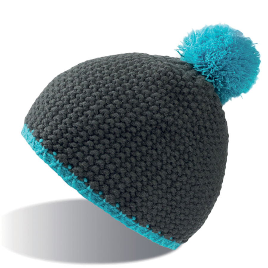 Шапка "PEAK", серый/бирюзовый, верх: 100% акрил, подкладка: 100% полиэстер