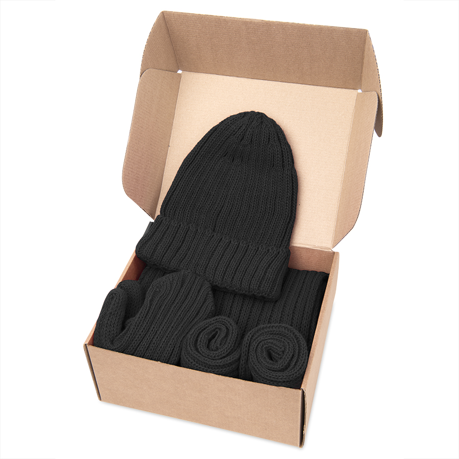 Набор подарочный НАСВЯЗИ©: шапка, шарф, варежки, носки, черный