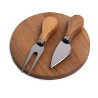 Набор для сыра: круглая доска и два инструмента в комплекте - нож для твердого сыра и вилка.