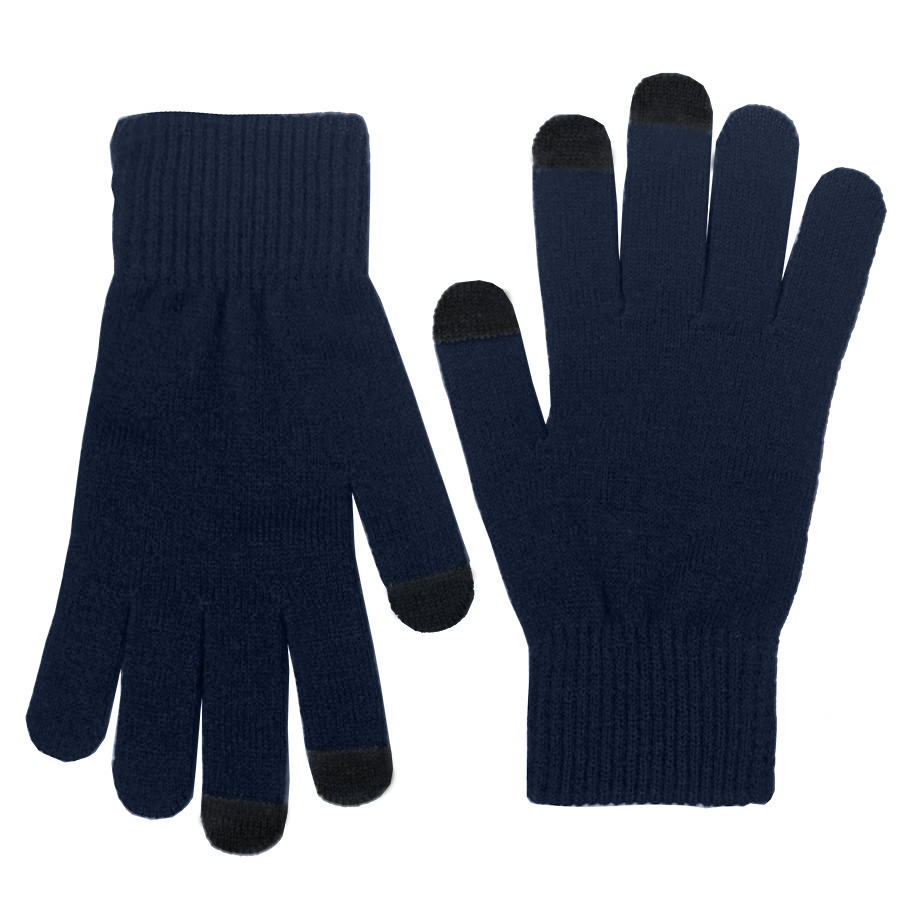 Перчатки из теплого и мягкого акрила с сенсорными пальцами. Основный цвет: темно-синий. Цвет сенсорных вставок: черный.