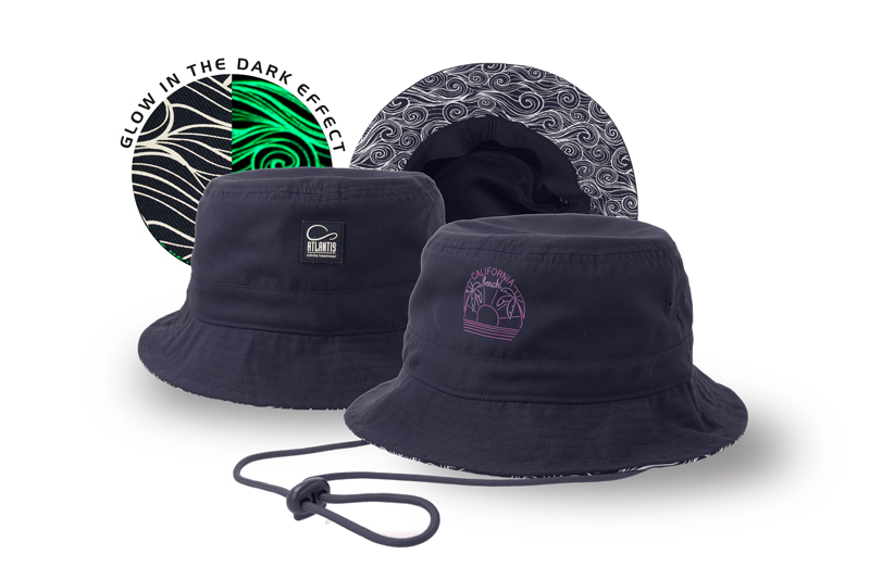 Панама из 100% переработанного полиэстера Трафаретная печать на нижней части полей УФ-чувствительный принт на куполе Силиконовый шеврон
