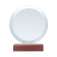 Круглая хрустальная награда на деревянном основании из бука в подарочной коробке.