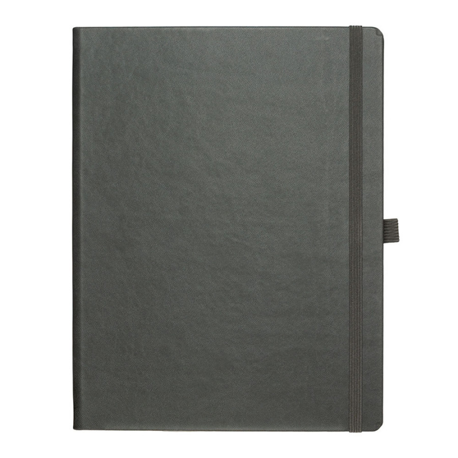 Блокнот PRINT А4; внутр. формат 19х25 см; 192 страниц, кремовая бумага 80 г; сертифицирована FSC; Печать в 1+1 цвет, все страницы пронумерованы; Шитый блок; Форцазы из черной дизайнерской бумаги 140 гр FSC; Карман из черной дизайнерской бумаги; Резинка 8 мм в тон обложки; Петля для ручки в тон обложки; Ляссе в тон обложки; Гибкая обложка из высококачественного итальянского кожзама; Обладает свойствами термоэффекта при слепом тиснении