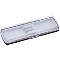 Пластиковый футляр для 2 ручек с прозрачной крышкой. Флокированный ложемент с держателем для ручек от 9 до 10 мм. На крышку футляра можно нанести логотип.